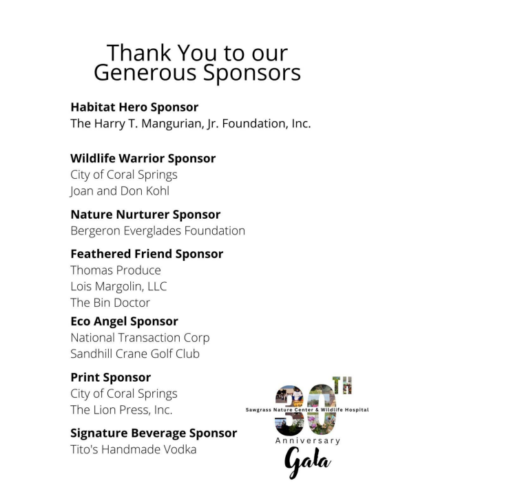 Sponsoring the Sawgrass Nature Center Annual Gala is a meaningful way for businesses and community